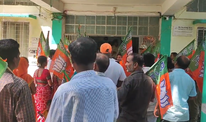 On Wednesday, BJP leaders and workers conducted a rally from the Kharibari BJP party office to the BDO office, where they staged a protest.