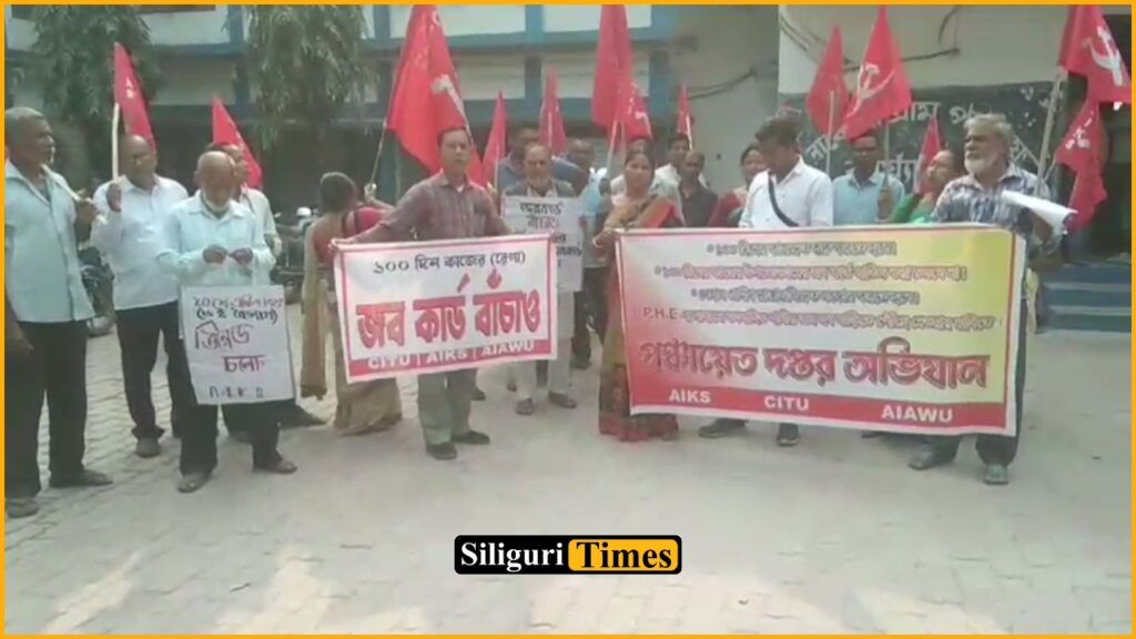 Rajganj, 11th March: The CPI(M)’s All India Kisan Sabha, along with CITU and Khet Mazdoor Union, submitted a memorandum at the Belakoba Gram Panchayat office, outlining 14 key demands, including the early start of 100-day work.