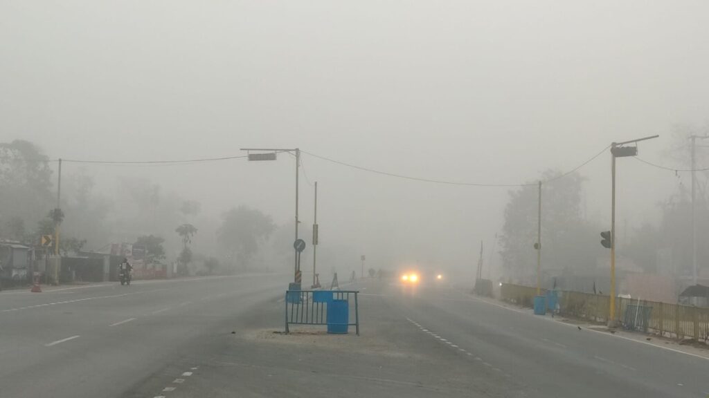 Reportedly, on Tuesday morning, a thick blanket of fog engulfed the region. Consequently, vehicles including lorries, buses, and motorbike riders were seen travelling with headlights on. In addition, the general public were spotted sitting near the bonfire in the absence of sunlight since morning. However, as the day progressed a sigh of relief was brought in by the soothing sun.