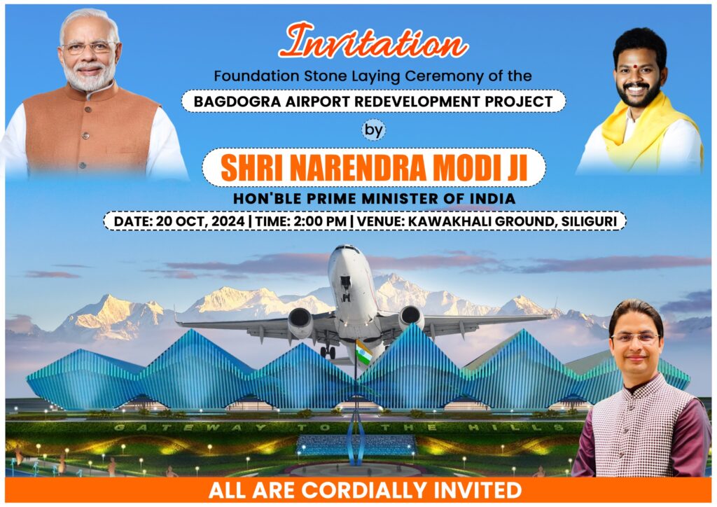 Darjeeling, 18th October: Darjeeling MP Raju Bista announced via a press release that Prime Minister Narendra Modi will lay the foundation stone for the first phase of the Bagdogra Airport New Terminal Project on October 20, 2024.