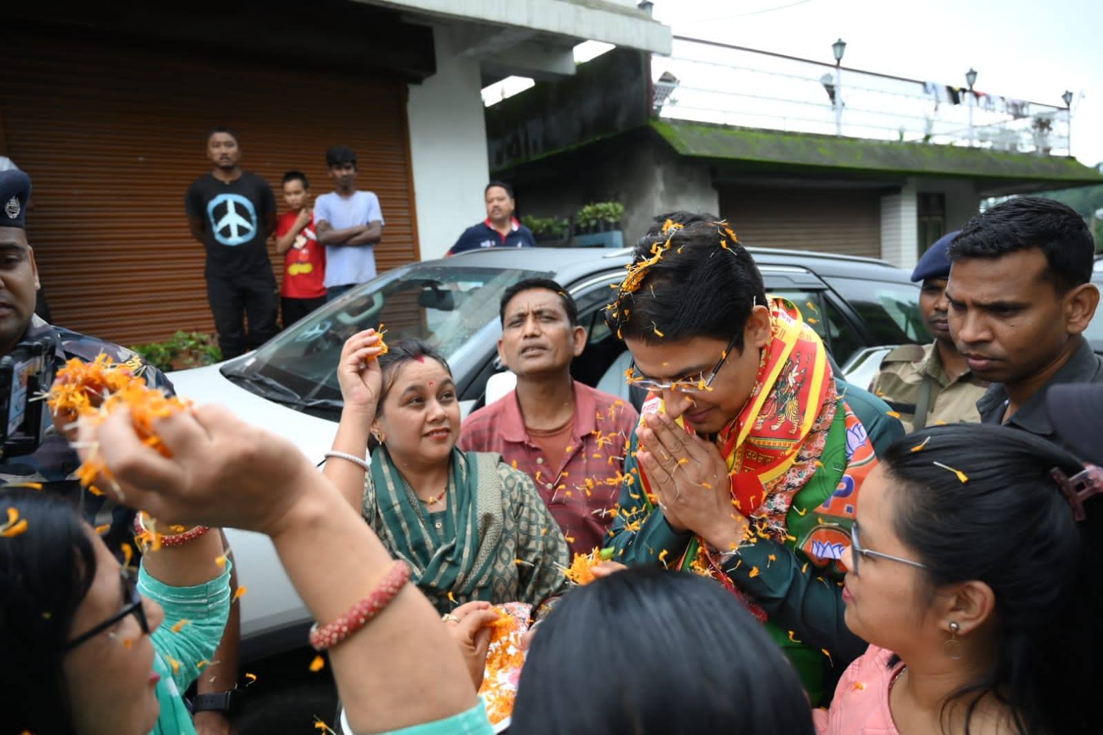 Teesta Valley, 23rd June: Raju Bista, the BJP Central Spokesperson and Member of Parliament from Darjeeling, embarked on a tour of Takdah Teesta Valley area, engaging with local residents while promoting the upcoming panchayat polls. The MP received a warm welcome from enthusiastic BJP supporters and workers from allied coalition parties.