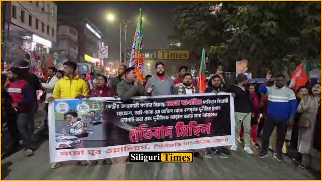 Siliguri, 09th January: Namo Yuva Warriors on Friday took out a protest march in Siliguri, alleging that the state government was creating obstacles in the functioning of the Central government.