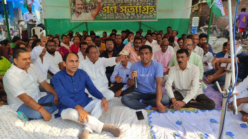 Naxalbari, 07th April: The Naxalbari Block Congress Committee has staged a sit-in protest in front of the Naxalbari party office to protest against the dismissal of Congress leader Rahul Gandhi’s MP post.