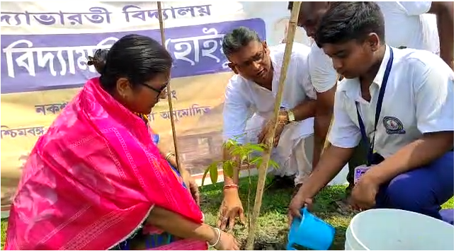 Naxalbari, 5th June: On the occasion of World Environment Day, Naxalbari Sarada Vidya Mandir, on Monday, organized a plantation drive in Nikhil Smriti Maydan of Naxalbari. Under the initiative, several varieties of saplings were planted.