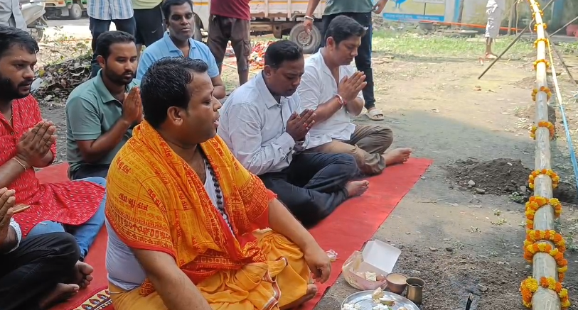 Naxalbari, 18th August: The Babupara Sporting Club in Naxalbari has officially begun its preparations for Durga Puja with the completion of the “Khutti Puja” (Pole Ceremony). This year marks the 65th anniversary of the club’s Durga Puja celebration.