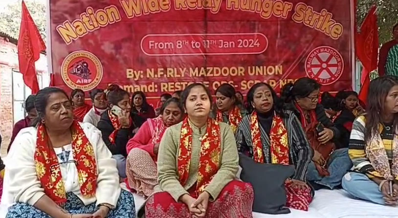 Reportedly, beginning Monday, the organization sat on a relay hunger strike in front of all the railway offices across the country till January 11. Under this, the women’s organization of the Junction and NJP branch of the Railway Mazdoor Union sat on a relay hunger strike in front of the NJP ADRM office.