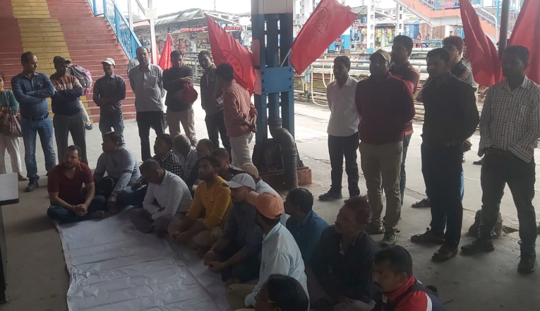 Siliguri, 20th March: Railway’s running staff is being made to work twice the time limit. Alleging this, NF Railway Mazdoor Union joined the movement today. A sit-in demonstration was organized by the labour union of NJP station. During this, they raised various demands.