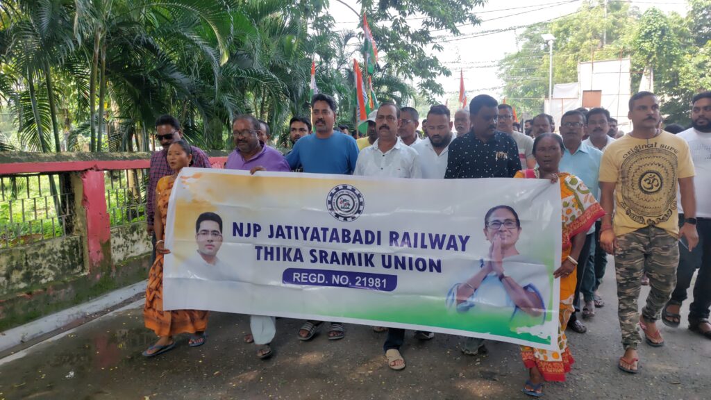 Siliguri, 09th October: The workers and supporters of the New Jalpaiguri (NJP) Jatiyatabadi Railway Thika Shramik Union carried out a rally demanding the repair of a stretch of road from NJP station to Tinbatti More. The rally commenced at Netaji More and ended at the railway station.
