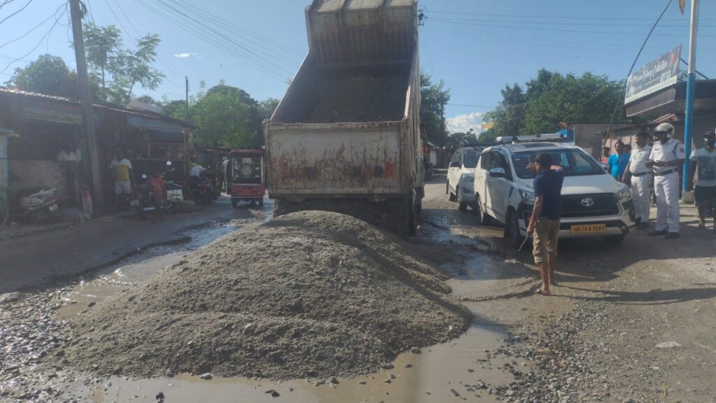 Siliguri, 25th September: The NJP Traffic Guard has taken the initiative to repair the dilapidated Baribhasa VIP Road. It has to be noted that the VIP road has been in a deplorable condition for several years, resulting in hardship for the daily commute of locals, including traffic issues. In addition, frequent accidents also occur on the said road. Despite the matter being notified to the administration the road condition remained the same.