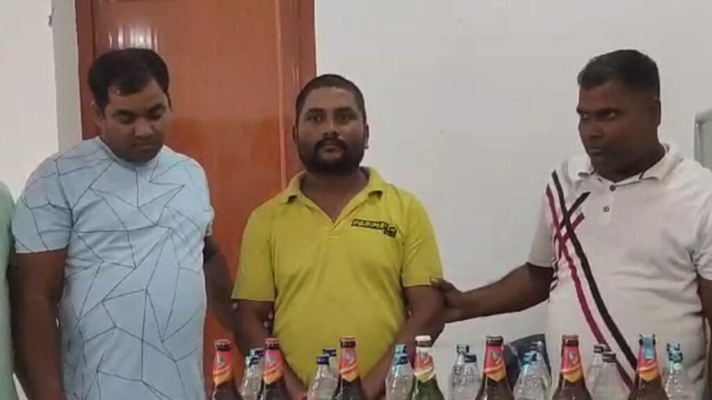 Siliguri, 30th October: In a crackdown on illegal liquor sale, NJP police arrested a man, identified as Shankar Mahato, with a substantial quantity of local and foreign liquor in a raid on a tea shop.