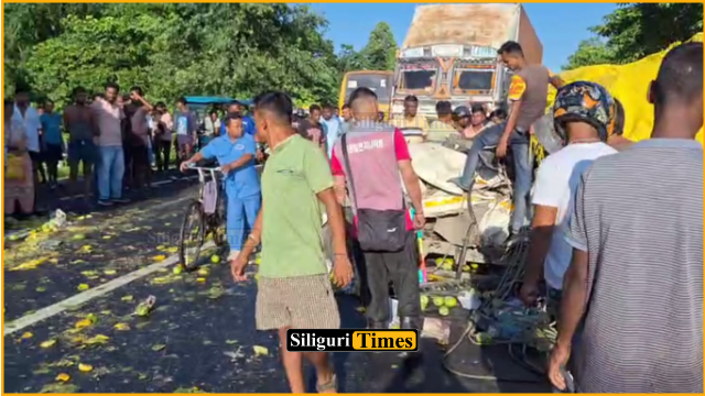 According to reports, the pickup van was transporting mangoes from Bihar to Siliguri, while the lorry was returning from Siliguri when the two vehicles collided head-on. The impact left the pickup van severely damaged. One passenger, identified as Guddu Kumar Yadav from Bihar, died on the spot.