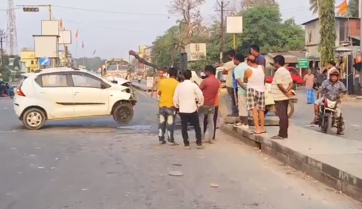 Bagdogra, 05th April: A horrifying mishap surfaced from Bagdogra earlier on Friday where an individual suffered significant injuries in a head-on collision between a four-wheeler and pickup van at the Panighata More on the Asian Highway 2 (AH2).