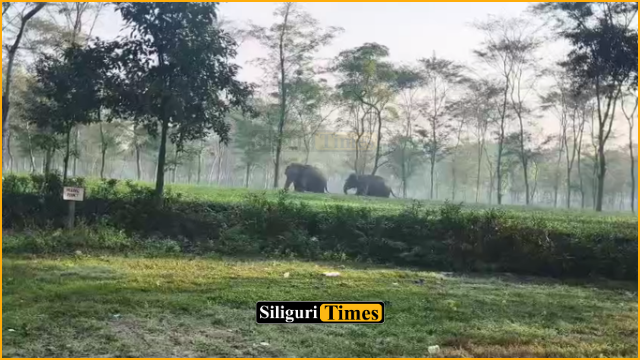Khairbari, 01st December: A pair of elephants entered the Thanjhora Tea Estate in Khairbari on Monday morning. Their sudden presence triggered panic among workers, forcing authorities to halt leaf-plucking work.
