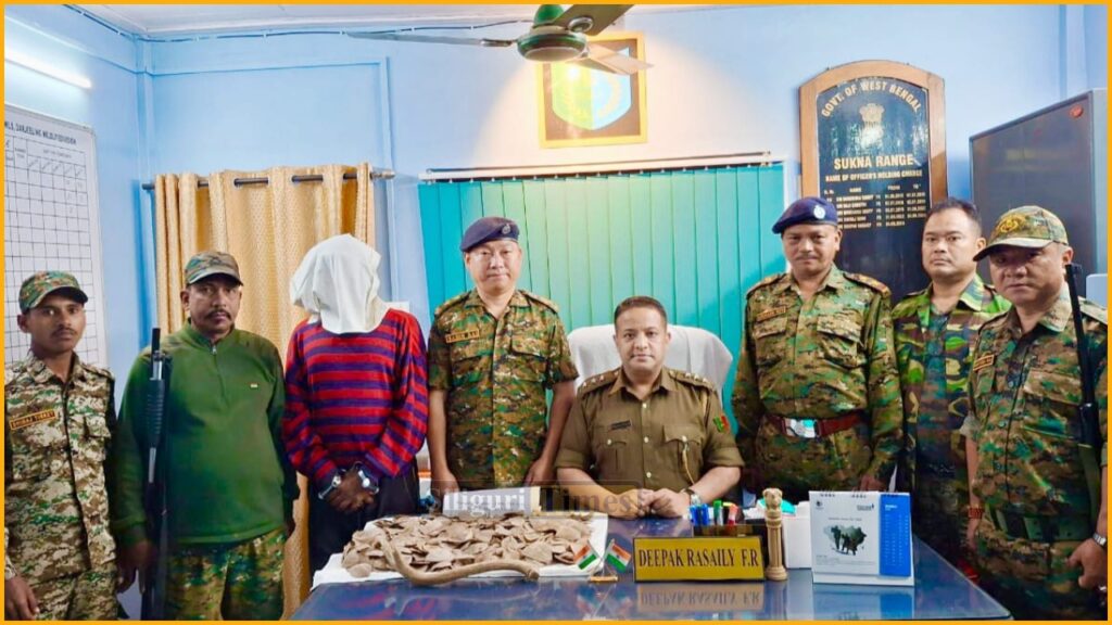 The wildlife articles were confiscated, and the accused was arrested under relevant sections of the Wildlife Protection Act. The operation was led by Deepak Rasaily, Range Officer, Sukna Range.