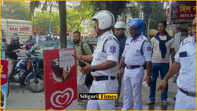 Siliguri, 01st December: The Panitanki Traffic Guard carried out a special drive on Siliguri’s Hill Cart Road to remove encroachments from footpaths and government-designated parking spaces.