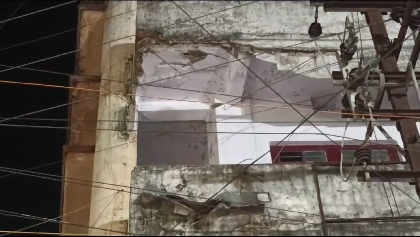 Jalpaiguri, 21st August: A section of an old multi-storied building, Mukta Bhavan, collapsed in Jalpaiguri’s Samaj Para More area, Ward No. 05, under Jalpaiguri Municipality. The incident occurred at approximately 10 p.m. on Tuesday when a large pillar from the third floor of the six-story building broke off, crashing onto a shop below and the road. Fortunately, several people in the vicinity managed to escape unharmed.