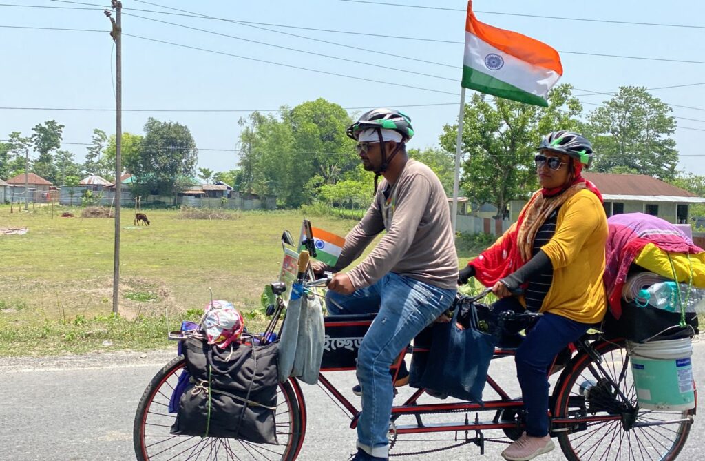 Rajganj, 10th May: A couple from Hoogly, Pradeep Biswas and Sangeeta Debnath Biswas, embark on a cycling journey to raise awareness about the importance of a green environment and the protection of our planet. Starting their tour from Hoogly on April 28th, the adventurous duo has now reached Ambari in Rajganj. Their trusty companion throughout the trip is their beloved bicycle, named Ichchedana. Once they conclude their tour of North Bengal, the couple plans to continue their mission by heading to Assam. Encouragingly, numerous individuals stepped up to support and assist them on their inspiring journey.