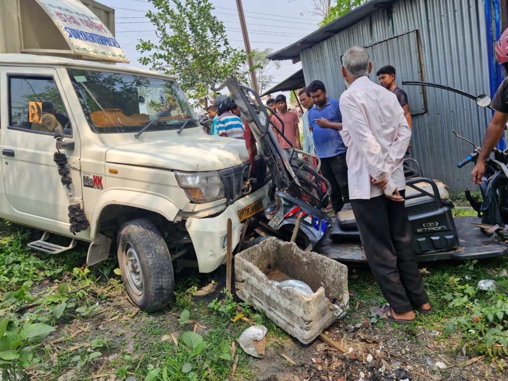 As per details received, on Tuesday, a speeding pickup van was heading towards Gandar More from Sahudangi. During this, the pickup van accidentally collided with an e-rickshaw coming from the opposite direction. Consequently, the e-rickshaw was damaged and the driver was injured.