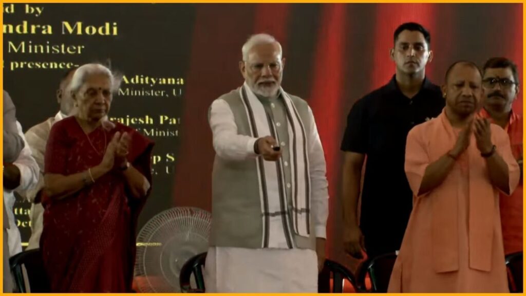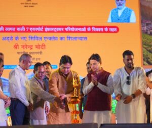 Siliguri, 20th October: Prime Minister Narendra Modi virtually laid the foundation stone for a new terminal building at Bagdogra Airport. The ceremony took place at Kawakhali ground in Siliguri and was attended by MoS Shantanu Thakur, Darjeeling MP Raju Bista, Siliguri MLA Shankar Ghosh, Mayor Gautam Deb, and other BJP leaders.