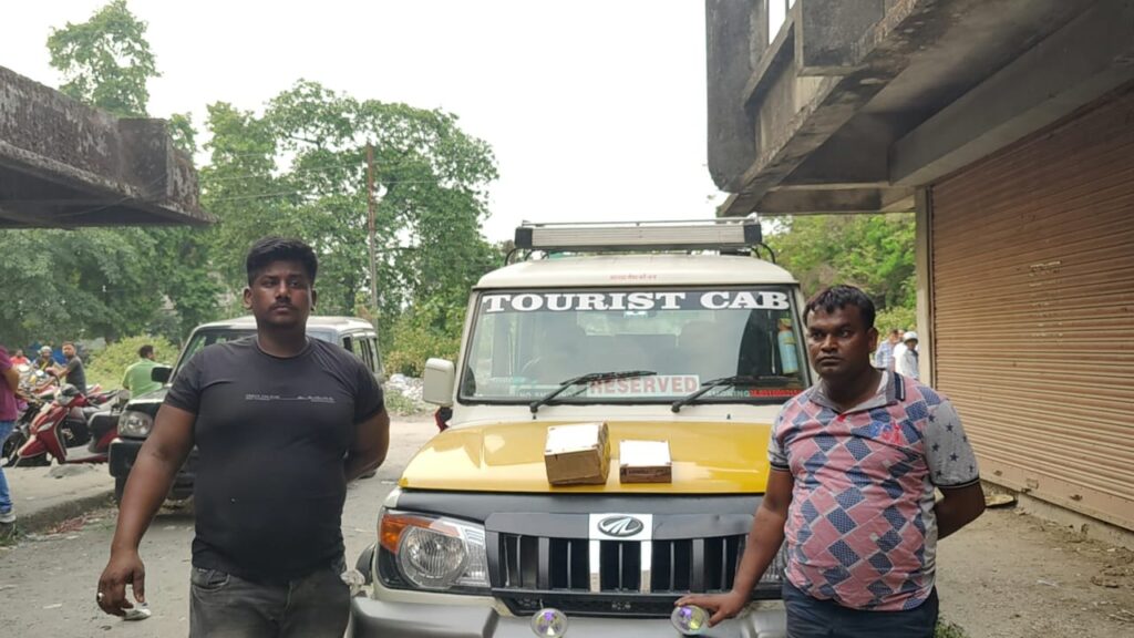 Siliguri, 15th May: In a significant breakthrough, the Siliguri Special Operation Group (SOG) and Bhakti Nagar police station collaborated to bust a long-running drug smuggling operation concealed within a taxi service. Acting on a tip-off, the police conducted a joint operation resulting in the apprehension of two individuals involved in the illicit trade. The accused, identified as Hajikul Sheikh and Mohammad Noor Alam, were caught red-handed with a substantial quantity of narcotics at the PC Mittal bus stand.