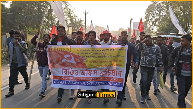 Protesters demanded the immediate cessation of harassment of citizens under the pretext of SIR, regular implementation of the 100-day work programme, guaranteed minimum wages for tea garden workers, and the repeal of the labour code.