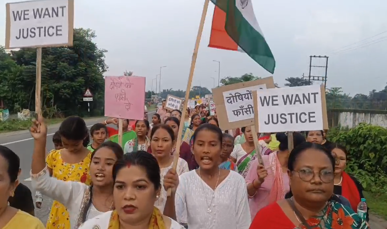 Naxalbari, 25th August: Residents of Hatighisa in Naxalbari took out a protest march against the violent rape and murder case at the R.G. Kar Hospital in Kolkata.