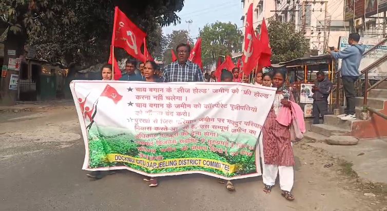 Reportedly, a protest rally was held starting from the Naxalbari’s Panighata More and to the bus stand. Workers burned government gazettes in protest that stemmed from a recent announcement made by CM Mamata Banerjee at the Bengal Business Summit in Kolkata. At the summit, she declared that 30% of the land in tea gardens could now be used commercially by businesses.