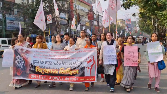 Siliguri, 09th February: A march was held in Siliguri by several organizations, including SFI, DYFI, AIDWA, and Basti organizations, demanding justice for the victim of the R.G. Kar case. The protest coincided with the birthday of the deceased young doctor involved in the incident, whose tragic death still remains a matter of unresolved justice.
