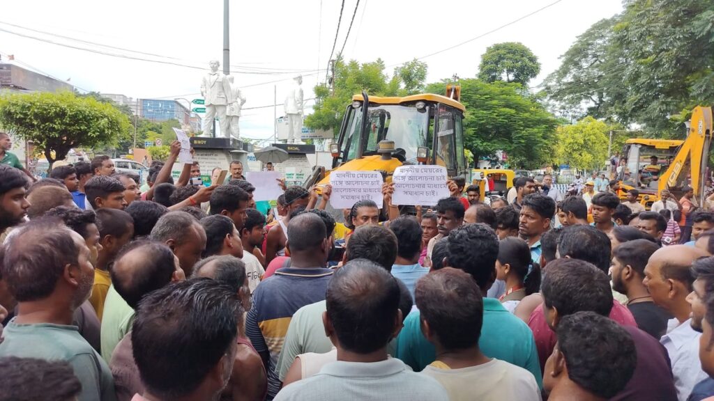 Siliguri, 07th August: The Siliguri Municipal Corporation faced significant resistance during an anti-encroachment drive at Jalpai More on Wednesday. The Corporation aimed to demolish shops built atop a high drainage in the area, but their efforts were thwarted by the Jalpai More Byabsayee Samiti, the local businessmen’s committee.