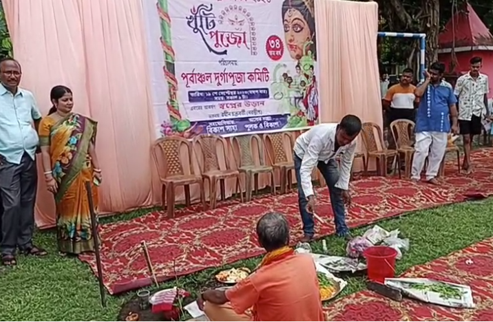 Siliguri, 19th September: The Purbanchal Durga Puja Committee launched its preparation for Durga Puja with the traditional ritual of ‘Khutti Puja’ at the ground of the Balaka Club under Ward No. 23 of Siliguri.