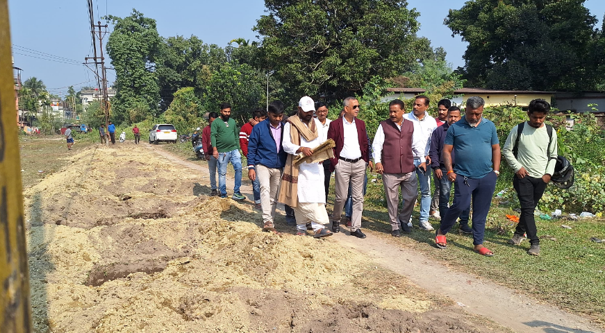 On Monday morning, Mayor Gautam Deb, Ward No. 04 Chairperson Jayanta Saha and Ward No. 32 Councillor Tapas Chatterjee visited the Kashmir Colony area to inspect the ongoing construction. The mayor thoroughly reviewed the situation and spoke to residents about their concerns.
