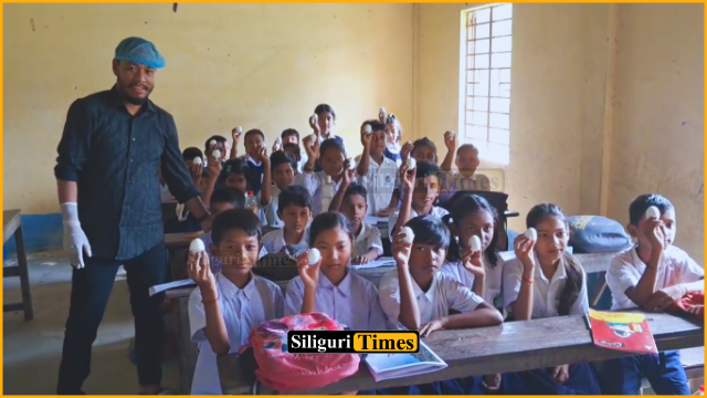 Rajganj, 28th July: Aiming to improve child nutrition, the Rajganj Block Administration took a special initiative on Monday, where nearly 200 students from various rural schools were given boiled eggs. The effort was personally led by Rajganj BDO Prashant Barman, who distributed the eggs by hand. Rajganj Police ASI Bapi Rahman was also present during the event.
