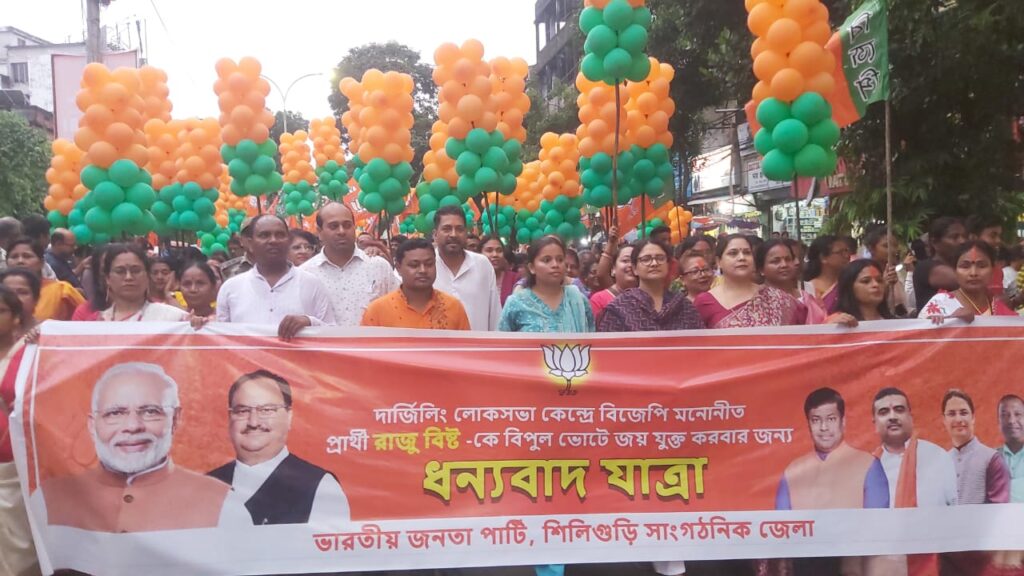 Siliguri, 15th June: Raju Bista has secured his position as MP from Darjeeling for a second term following the recent Lok Sabha elections. In celebration and to express gratitude to the city’s residents, the BJP organized a grand thanksgiving procession on Saturday.