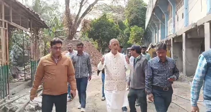 Siliguri, 21st February: The renovation of Kanchenjungha Stadium in Siliguri is progressing rapidly. On Friday, Mayor Gautam Deb inspected the ongoing work, accompanied by Deputy Mayor Ranjan Sarkar, MMIC Dilip Barman, and other officials.