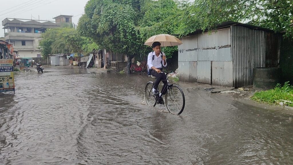 In addition, the Sahudangi Ashram and a high school are situated next to the road and students are bound to navigate through the road amid the flooding. Residents demand the construction of a proper drainage system in the area in response to the occurrence of frequent accidents due to the flooding.