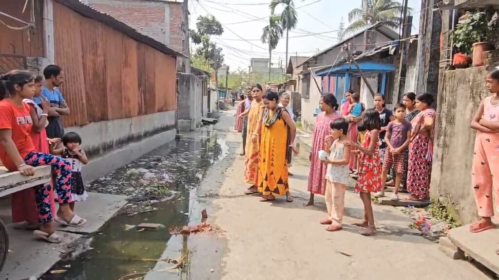Fulbari, 05th April: Residents of the Michael Madhusudan Colony area, under the Fulbari I Gram Panchayat (GP), are facing severe difficulties due to waterlogging caused by drainage water overflowing onto the streets. This has led to significant transportation problems and a foul stench for the locals.