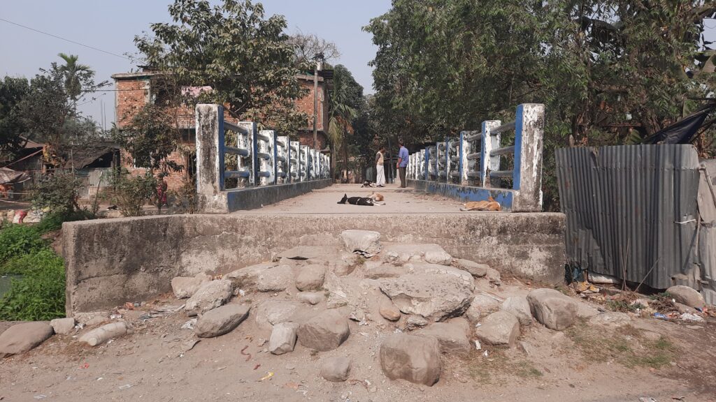 According to reports, the bridge is three feet higher than the surrounding road. Compounding the issue, locals are facing difficulties in commuting due to the dilapidated approach road. Significantly, in the Madhya Shantinagar neighbourhood, locals have made provisions to cross the bridge by laying pieces of concrete beside it forming a staircase-like structure. However, this leads to frequent accidents in the area posing a threat to the public.