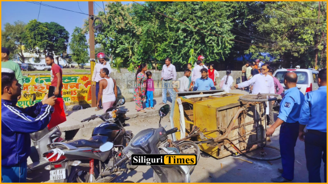 Siliguri, 13th November: A serious road accident occurred in Siliguri on Thursday morning when a rickshaw carrying school children was hit by a speeding bus, leaving four children injured, two of them critically.