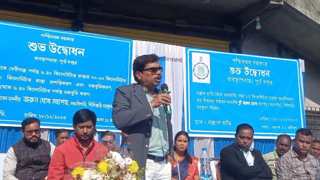 Kharibari, 18th December: The Sabhadhipati of Siliguri Mahakuma Parishad Arun Ghosh, has laid the foundation stone of two roads in Kharibari. Reportedly, on Monday, the 6.40 km road stretch heading from Kharibari to Deviganj and another stretch of 14 km from Naxalbari to Ambari was officially inaugurated.