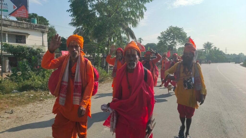 Rajganj, 12th December: A group of saints from Assam are headed towards Ayodhya to witness the inauguration of the Ram Mandir. On Monday, the saints reached the Bhutki Haat area of Rajganj under the Jalpaiguri district. After spending the night at the Radha Govinda temple, the saints continued on their journey the following day.