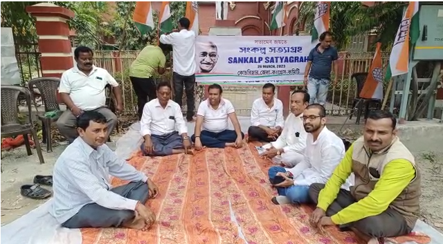 Cooch Behar, 26th March: The Congress began a day-long Sankalp Satyagraha’ on Sunday across the country in protest against the dismissal of Congress leader Rahul Gandhi’s MP post. Regarding the same, Cooch Behar District Congress also observed ‘Sankalp Satyagraha’