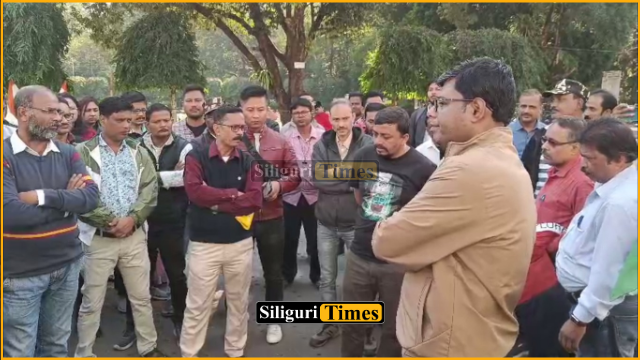 Siliguri, 16th December: Members of the Sara Bangla Trinamool Shiksha Bandhu Samiti staged a protest at the administrative building of North Bengal University on Tuesday, by hanging locks, over unpaid Dearness Allowance (DA) for the past five months.