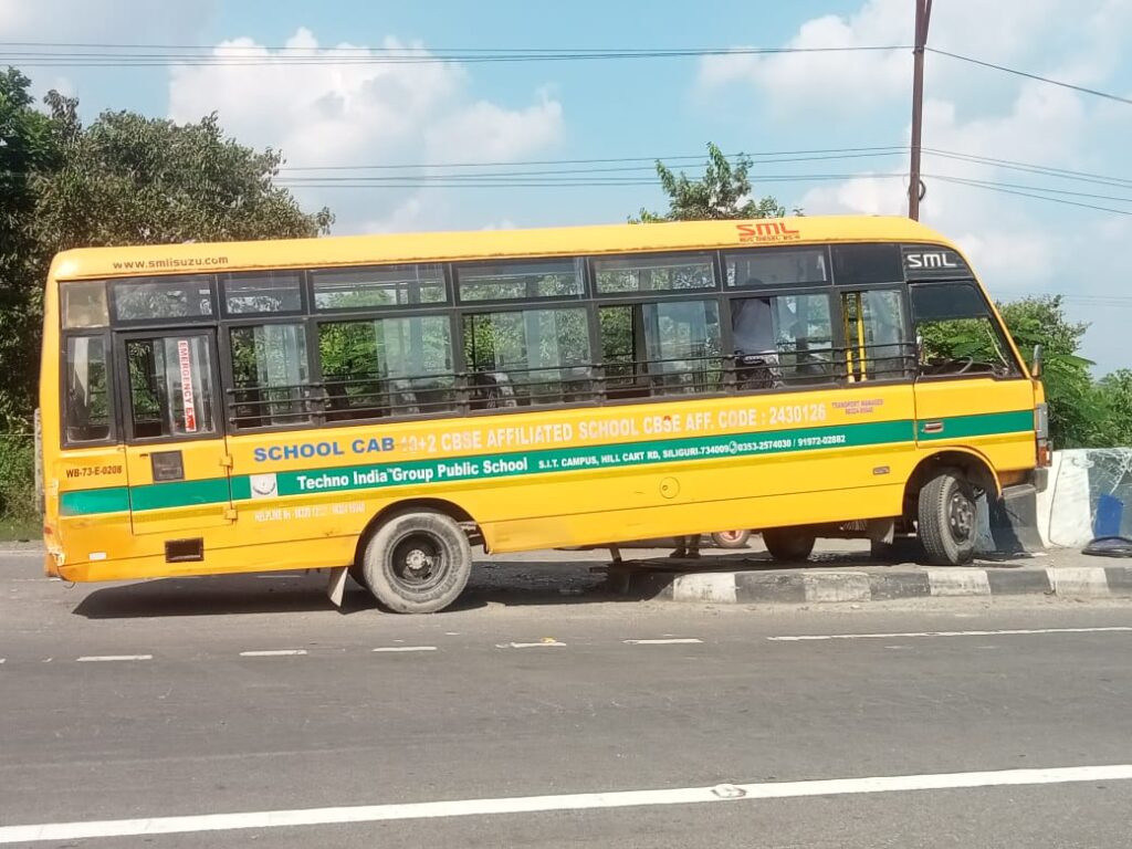 Reportedly, the incident occurred when a private school bus, en route from Salbari to Medical More, lost control and collided with the divider of the Phansidewa More flyover under Matigara Police Station. At the time, eight individuals, including students, were on board.