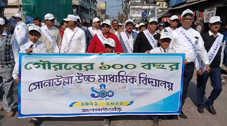 Jalpaiguri, 07th January: On Tuesday, a grand procession was organized to mark the centenary celebration of Sonaulla Higher Secondary School in Jalpaiguri. The procession started from the school premises and traversed through the entire town.