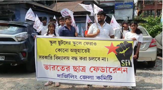 In this regard, Ankit Dey, Secretary, of the Darjeeling District Committee of SFI, stated that the education system of the state has become a hub of corruption. The number of students in schools has decreased since the COVID pandemic. Due to a lack of financial resources, several underprivileged children are not being able to continue with their schooling. Stating this, he added that they have arranged an alternative for education in rural and tribal areas. He added that they are conducting ‘School Chhoteder Schoole Ferao’ in the entire state and government schools should not be closed under any circumstances, and they are fighting for the said demand.