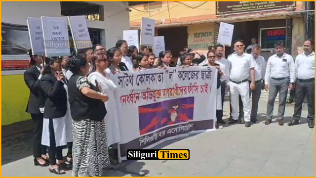 Siliguri, 04th July: Protests continue across the state over the Kasba gangrape incident, with lawyers from the Siliguri Court also joining in. On Thursday, the Siliguri Bar Association organised a protest within the court premises, demanding justice for the victim.