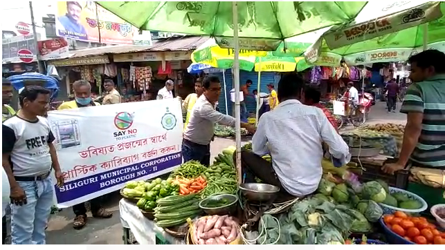 Siliguri, 20th April: To spread awareness regarding the harmful effects of using plastic carry bags, in view of the benefit of the upcoming generation, Siliguri Municipal Corporation’s Borough Committee No. 2 today launched a campaign at Bidhan Market Siliguri.