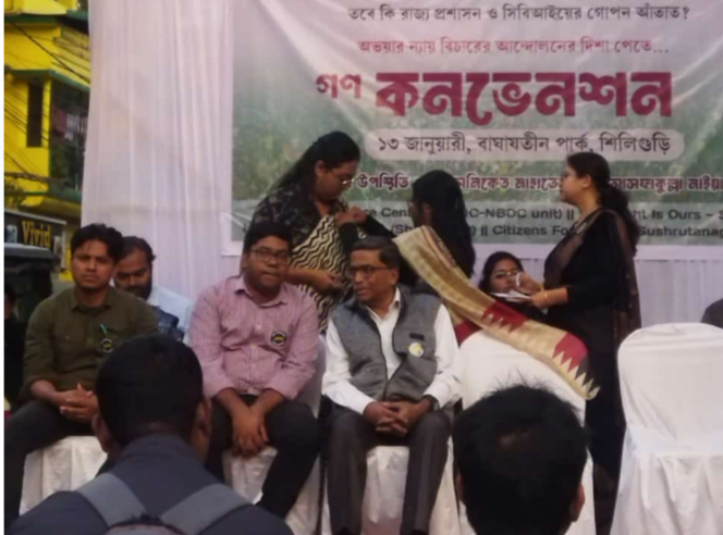 Siliguri, 13th January: A public gathering was organized in Siliguri on Monday, five months after the R.G. Kar incident, where justice is still pending. The event, arranged by several organizations, including the Medical Service Center and The Night is Ours, called for justice and raised concerns over allegations of evidence tampering and collusion between the CBI and the state government.