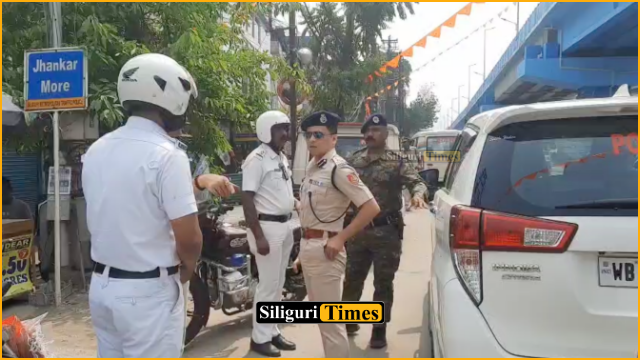 Siliguri, 26th March: To strengthen security arrangements for Ram Navami, Siliguri administration is fully prepared. Police Commissioner Syed Waquar Raza conducted inspections across important areas of the city, including NTS More, Hashmi Chowk, Ramkrishna More, and ISKCON More.