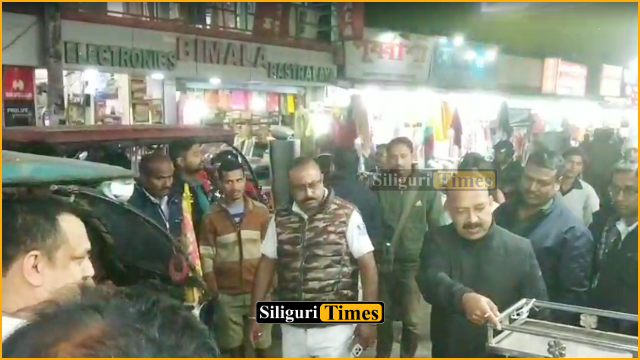 Siliguri, 05th February: Siliguri Traffic Police launched a fresh late-night operation at Bidhan Market to clear illegal encroachments from roads and footpaths, removing several roadside shops during the drive.